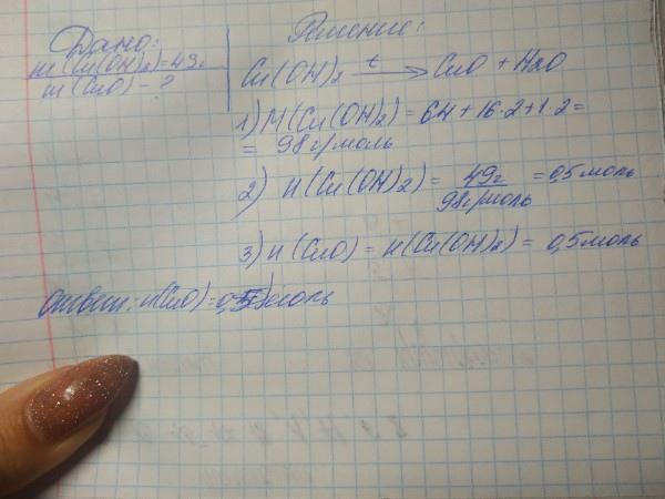 n(Cu(OH)2)=m(Cu(OH)2)/M(Cu(OH)2)=49г/98гмоль=0.5моль