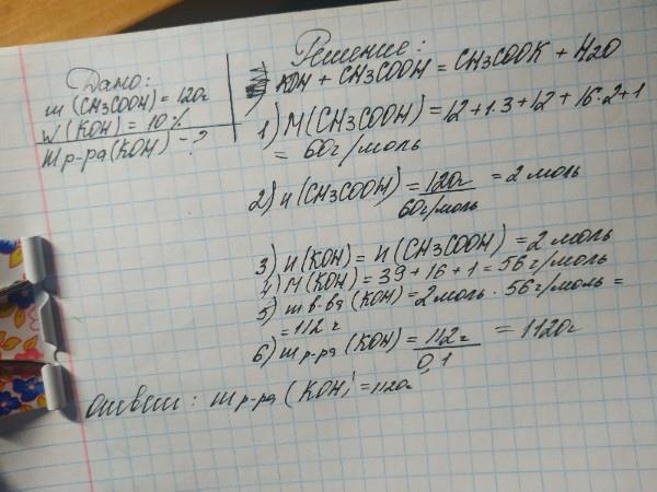 полной нейтрализации 120 г уксусной кислоты.