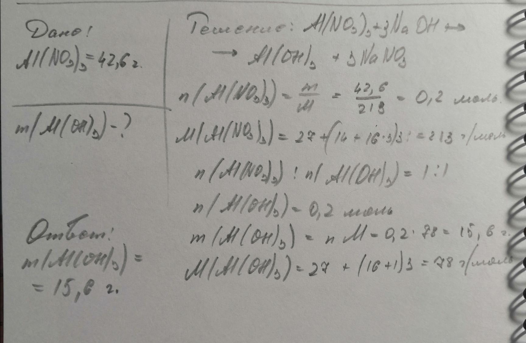 К Нитрату алюминия массой 42,6 прилили гидроксид натрия, рассчитайте массу осадка. Решите пожалуйста!!!!!!!