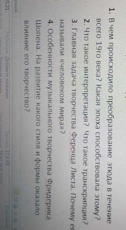 1) Этюд (от французского «etude»-буквально изучение,учение) – инструктивная музыкальная пьеса , первоначально предназначенная только для совершенствования технических навыков игры на инструменте.Пьесы подобного рода стали появляться в изобилии после 1800 года. Развитие жанра этюда связано прежде всего с расцветом вначале 19 века виртуозного исполнительства на фортепиано (этюды для фортепиано И.Б.Крамера,М.Клементи,М.Шимановской,И.Мошелеса,К.Черни).Позднее появляются этюды для скрипки (Р.Крейцер,П.Роде),виолончели (Д.Поппера) и других инструментов.У композиторов –романтиков ( Н.Паганини,Ф.Лист,Ф.Шопен,Р.Шуман,Ф.Мендельсон,И.Брамс) этюд становится художественно значительным произведением,трактованным либо как яркая концертная пьеса,либо как миниатюра типа прелюдии.