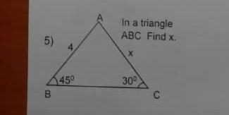 x = 4sin45°/sin30° = 4•√2/2 / 1/2 = 2√2 • 2/1 = 4√2 .