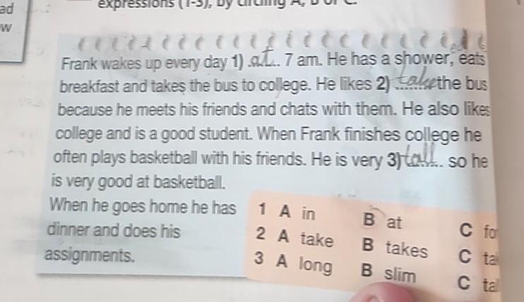 breakfast and took the bus to college. He liked bus because he met his friends and chated with them. He also liked college and was a good student. When Frank finished college he