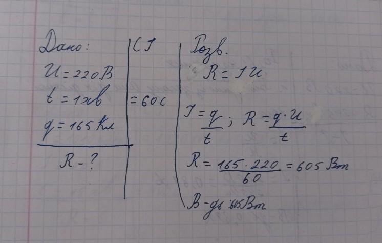 1. Яка потужність електрочайника, якщо при напрузі 220 В за 1 хв через його спіраль проходить 165 Кл електрики