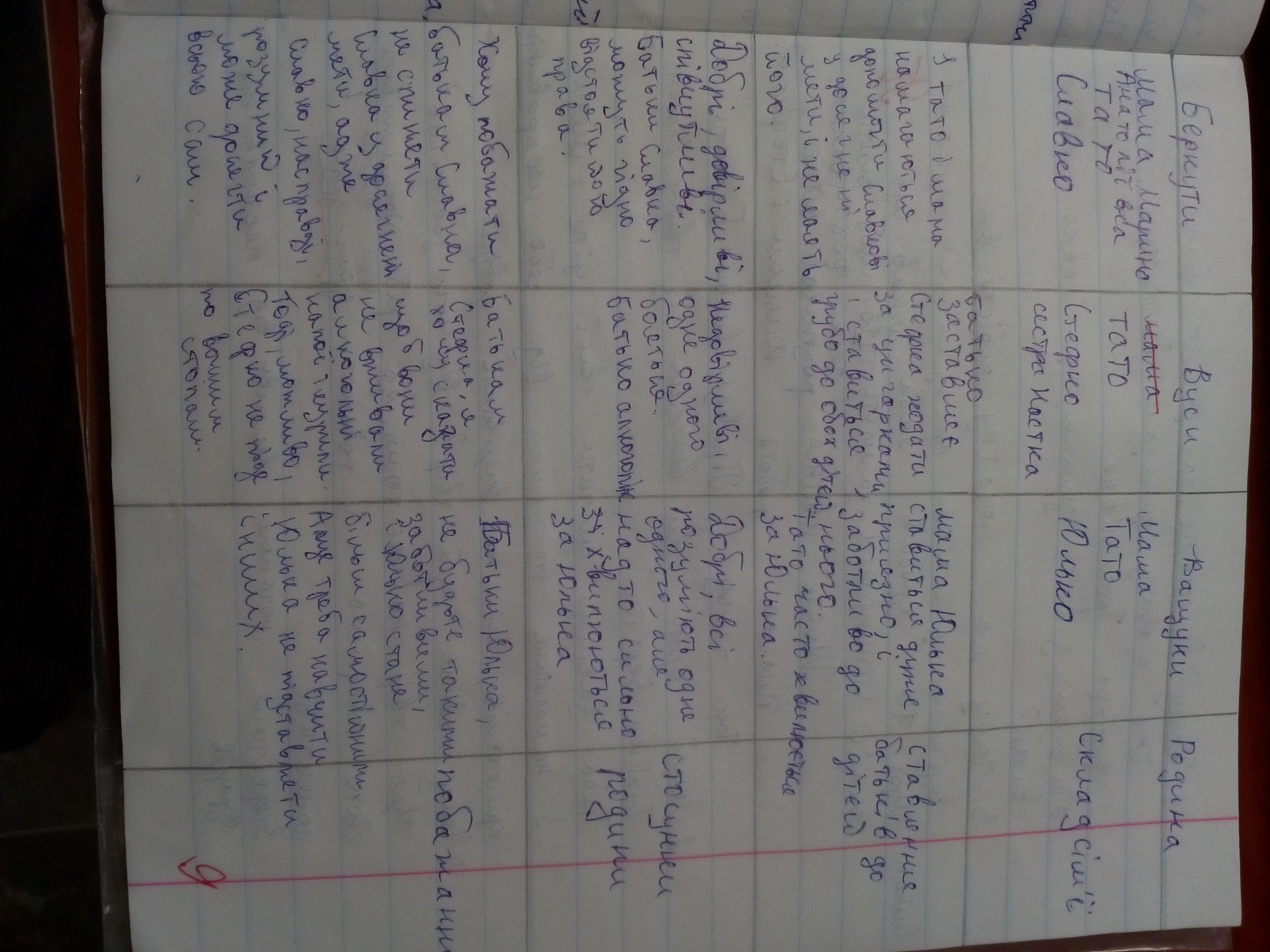 11. Заповніть у робочому зошиті таблицю «Стосунки батьків і дітей». Коротко