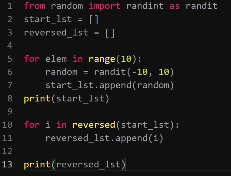 Створити список з 10 випадкових елементів (від -10 до 10).