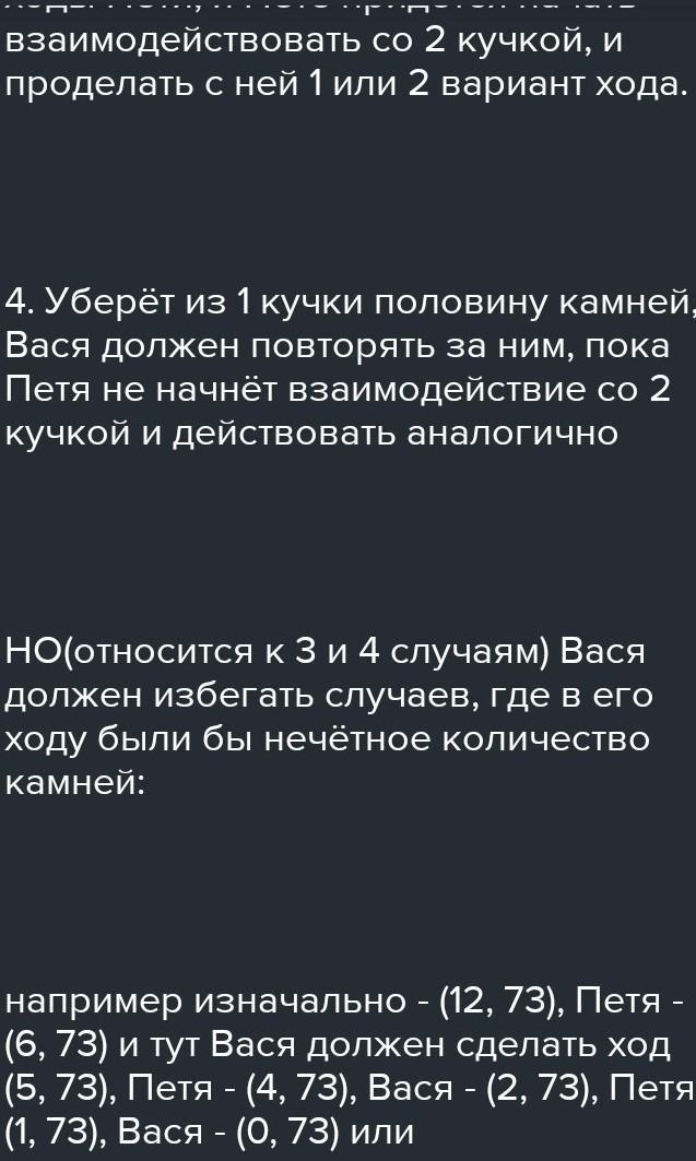 взять, чтобы в дальнейшем моякно было выиграть независимо от ходов Васи. Количество камней?