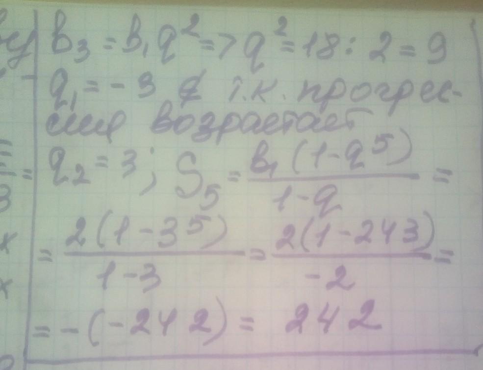 Знайдіть суму пяти членів зростаючої прогресії(bn) якщо b1=2;b3=18​