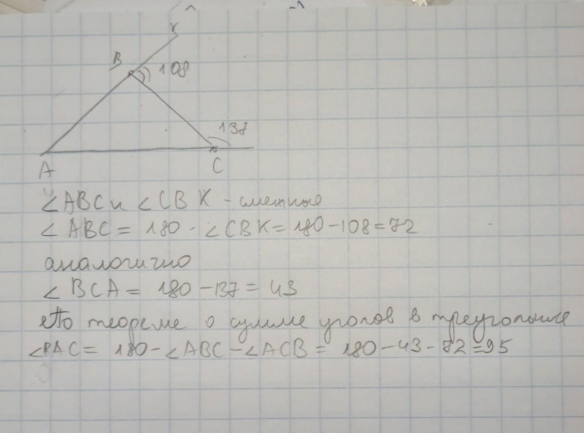 <ВАС = 180° - (43° + 72°) = 180° - 115° = 65°