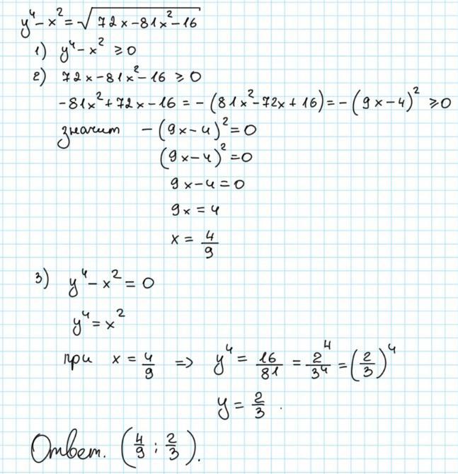 y⁴-x²=√72x-81x²-16