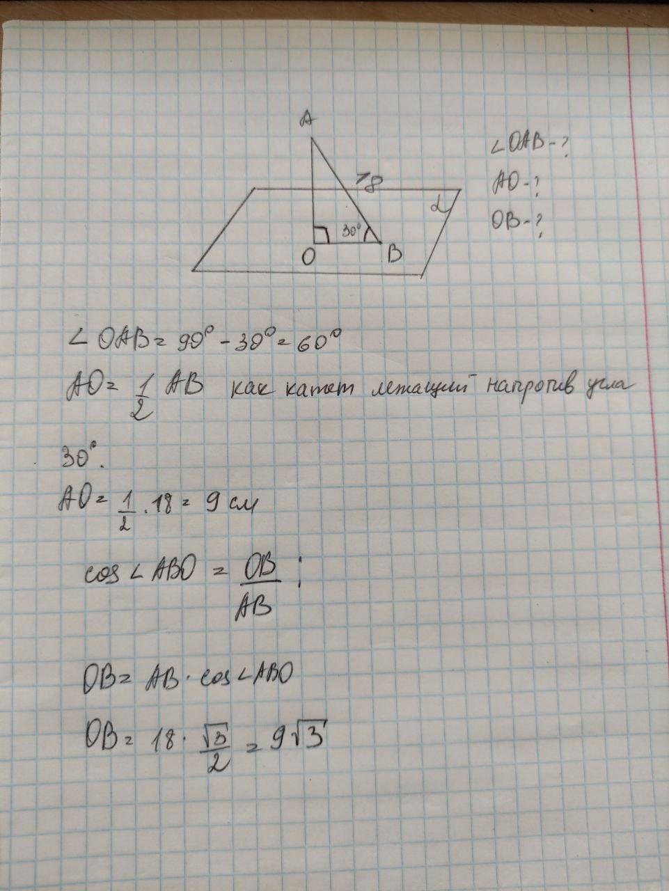 Наклонная AB образует с плоскостью альфа угол 30°, вот так начинается, пожалуйста скиньте хотя бы 1 задачу.
