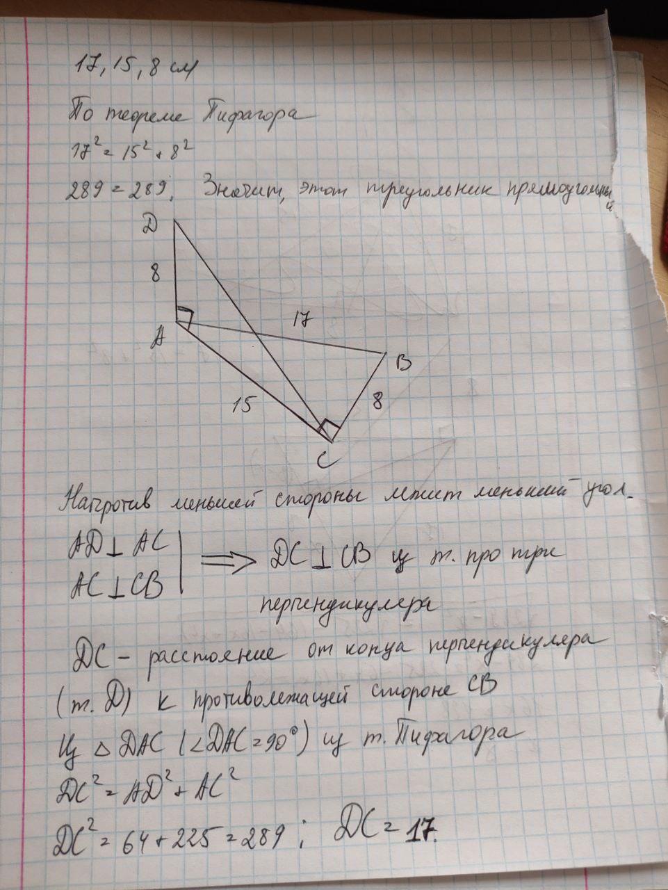 ПС в третьем расстояние от второго конца перпендикуляра (точки А) к противолежащей стороне ровно 15 (сторона АС)