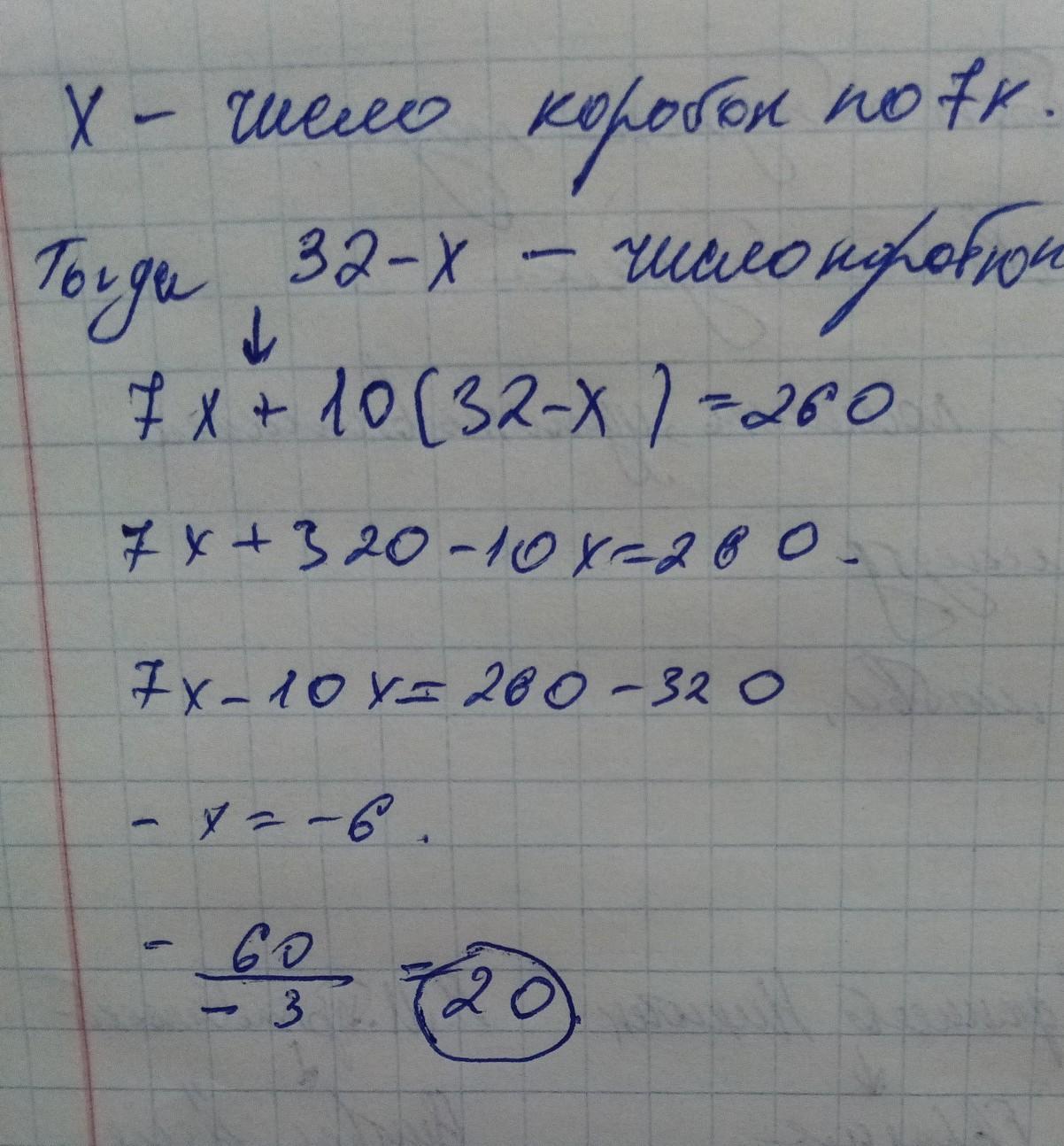 x- число коробок по 7к