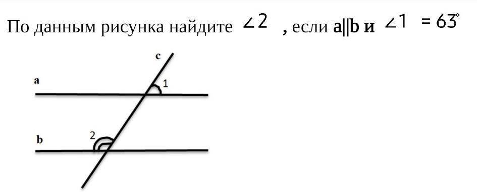 Угол, смежный с 1, = 180°-63°=117°