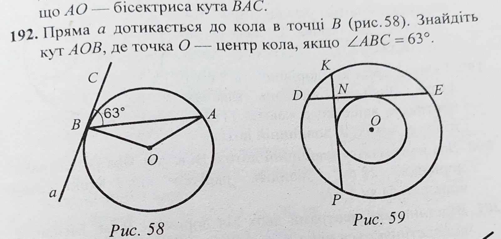 ОВ перпенд. а (по св. радиуса провед. в точку касания) <АВО=90-63=27°
