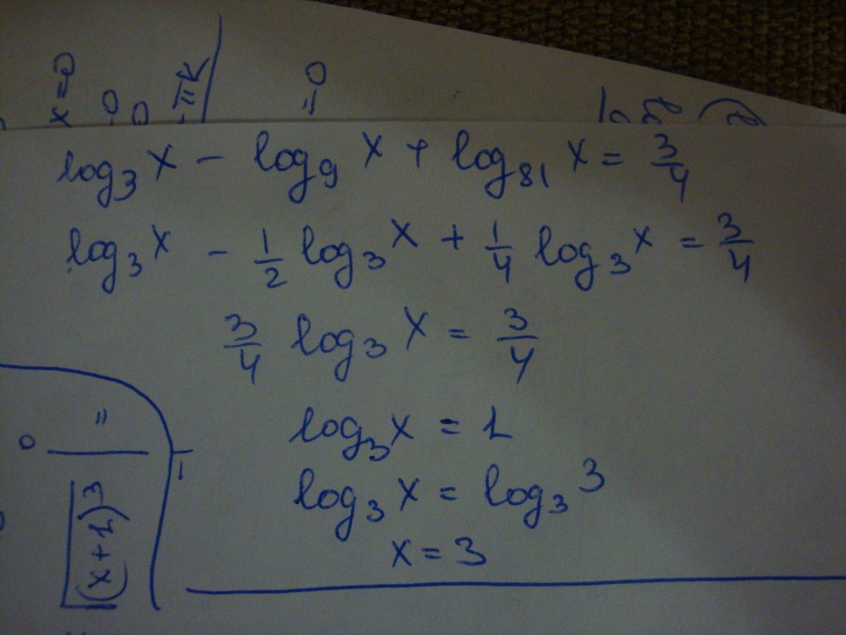 log3 x -1/2 log23 x + 1/4log3 x=3/4