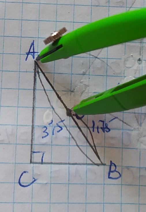1) Рисуем остроугольный треугольник, измеряем каждую сторону, делим эту величину на 2 и отмечаем точкой середину отрезка. АС=3,6см, значит середина отрезка АС=3,6÷2=1,8см. Отметив эту точку, с помощью угольника проведём к ней перпендикуляр.