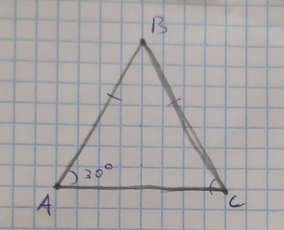 ABC в равнобедренном треугольнике, AC - основание, угол А= 30 градусам. Найдите наибольшую сторону