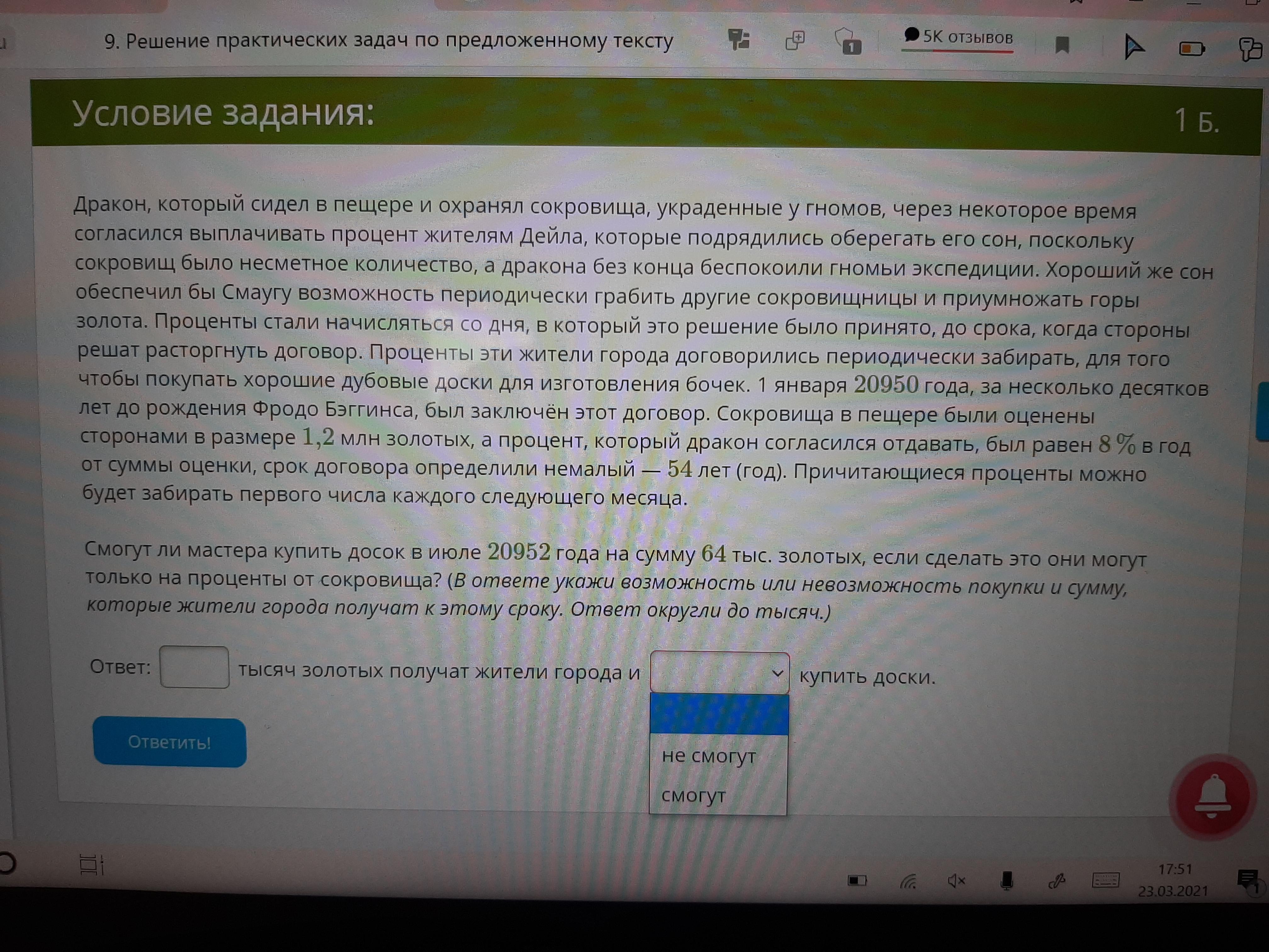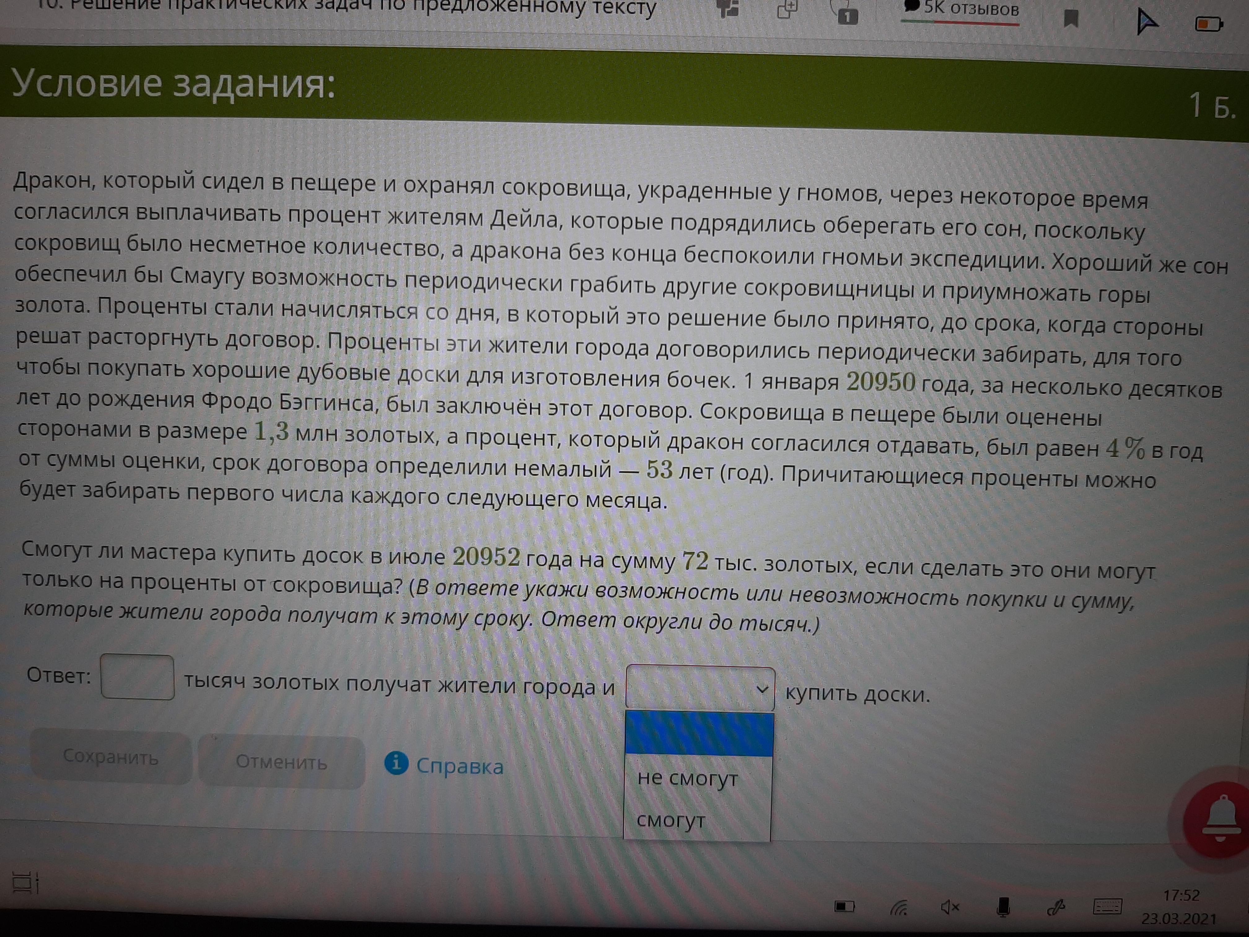 Ну там: "Ответ: ____ тысяч золотых получат жители города...."