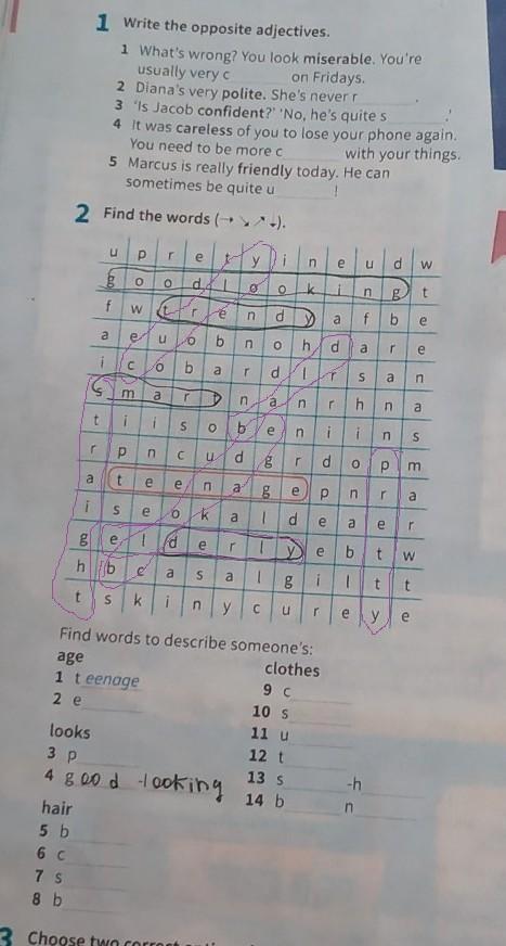 age: 2 elderly; looks: 1 pretty hair: 1. blonde 2. curly 3. straight 4. bald
