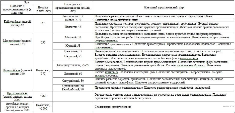 Эра|продолжительность|характеристика анаморфоза, идиодаптации и дегенерации.
