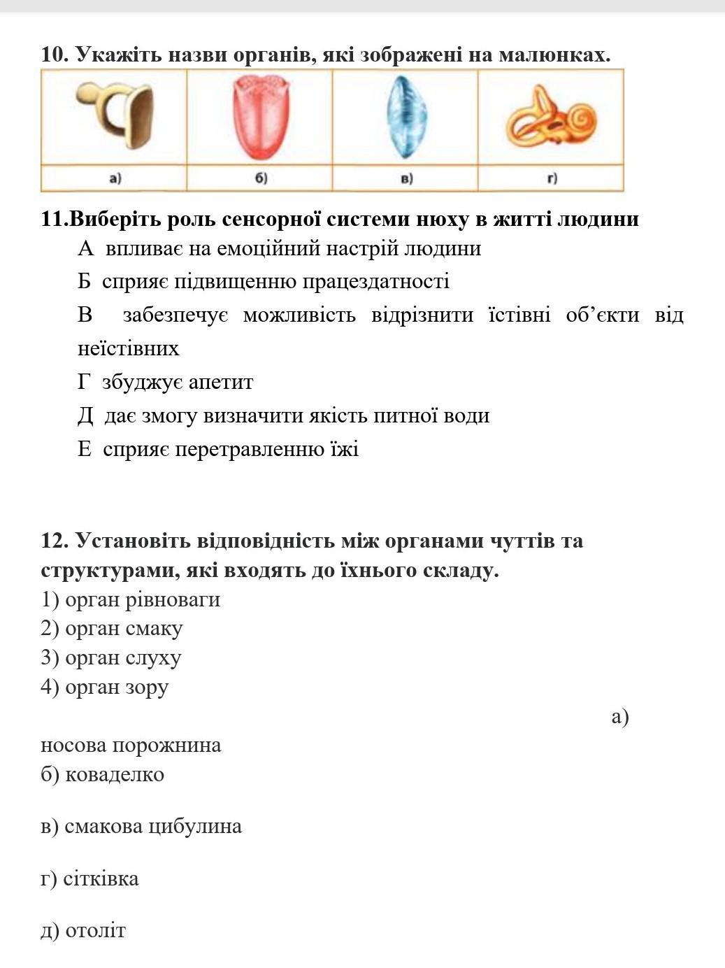 10. а) Дотиковий; б) Смаковий; в) Зоровий; г) Слуховий.