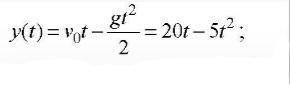 Тіло кинули вертикально вгору з швидкістю 20 м/с. Написати рівняння залежності координати тіла від часу.