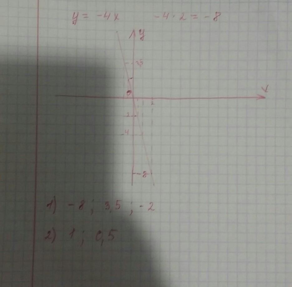 Постройте график функции y = -4х. Пользуясь графиком,