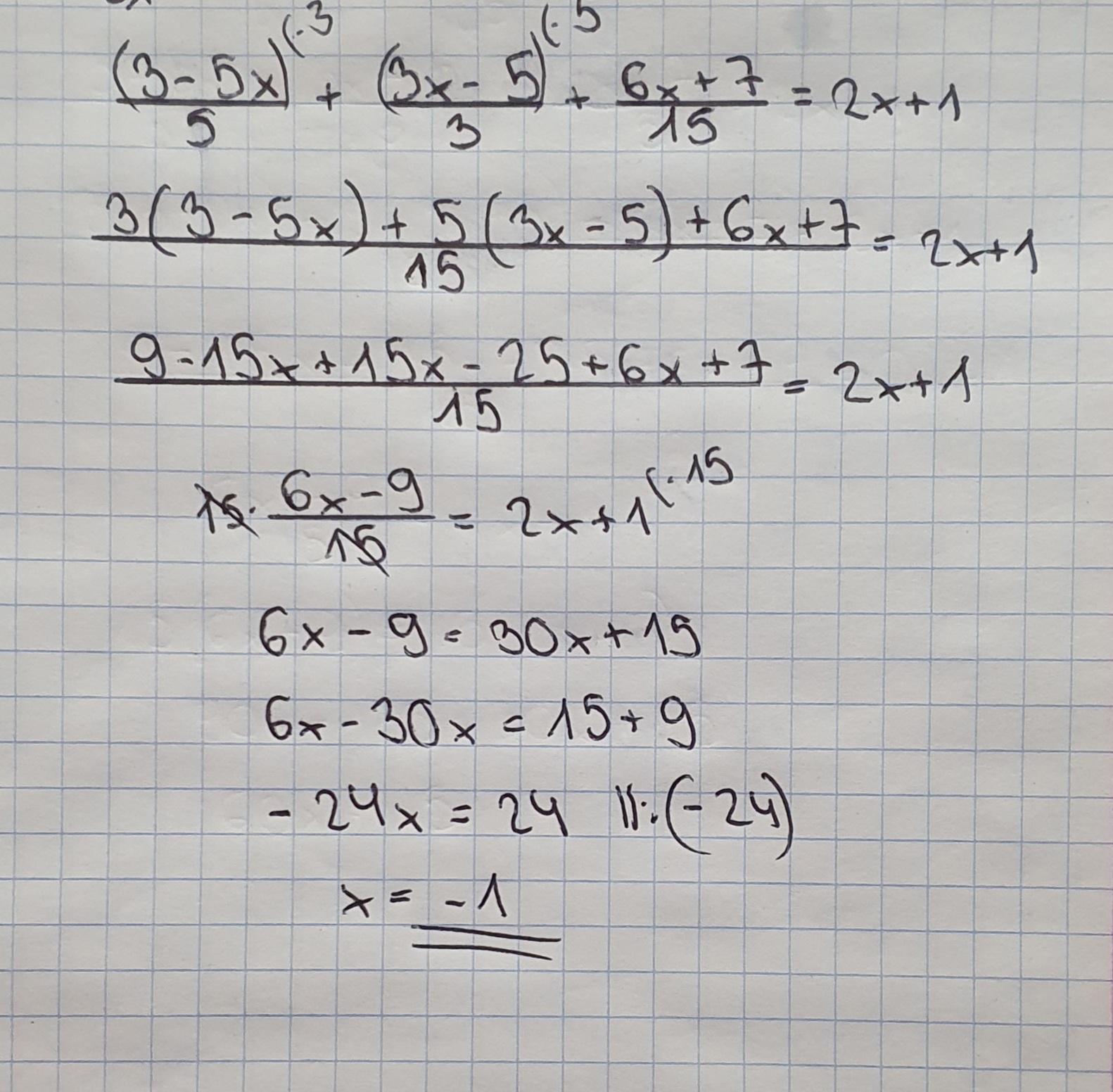 (3-5х)*3/15+(3х-5)*5/15+(6х+7)/15=2х+1