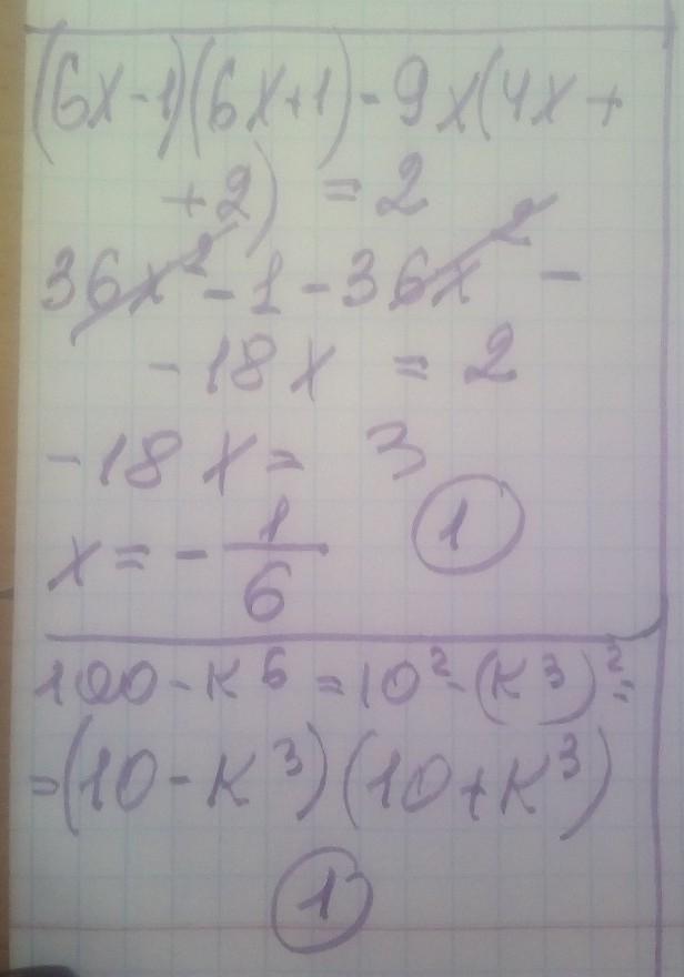 A4. (6х-1)*(6х+1)-9х*(4х+2)=2