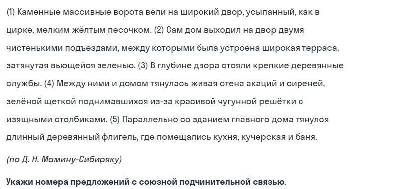 2. [Сам дом выходил на мощенный двор двумя чистенькими подъездами], (между которыми(с.с.) была устроена терраса, затянутая вьющейся зеленью). СПП (+)