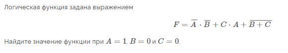 Найдите значение функции при `A=1`, `B=0` и `C=0`.