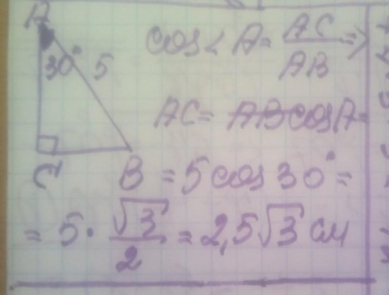 3. У прямокутному трикутнику АВС (<С=90°) кут А дорівнює 300° Знайдіть АС, якщо АВ=5 см.