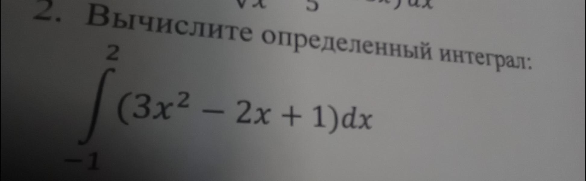 \int\limits^{ 2 } _ { - 1}(3 {x}^{2} - 2x + 1)dx = ( \frac{3 {x}^{3} }{3}   -  \frac{2 {x}^{2} }{2}  + x)|^{ 2 } _ { - 1} =  \\  = ( {x}^{3} -  {x}^{2} + x)  |^{ 2 } _ { - 1} =  \\  = 8 - 4 + 2 - ( - 1 - 1 - 1) = 6 + 3 = 9