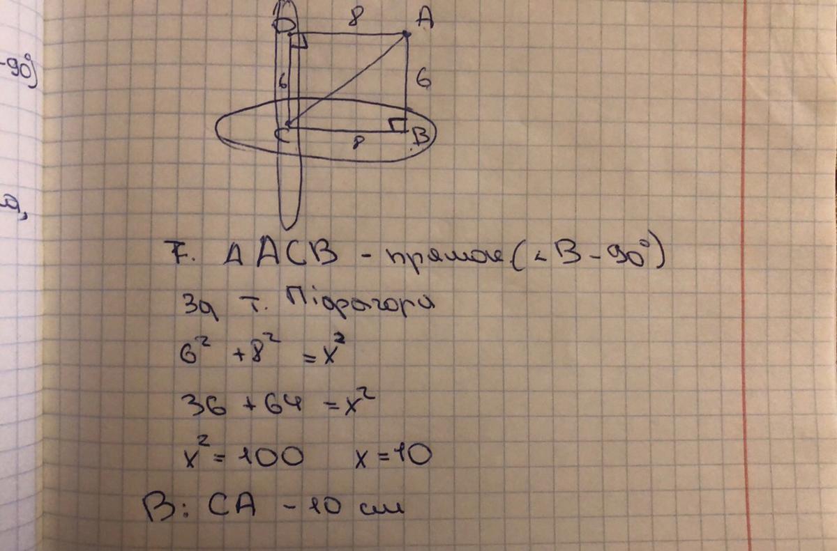 1) Дві площини взаємно перпендикулярні. Точка А віддалена від них на 8 см і 6 см. Знайдіть відстань від точки А до лінії перетину цих площин.