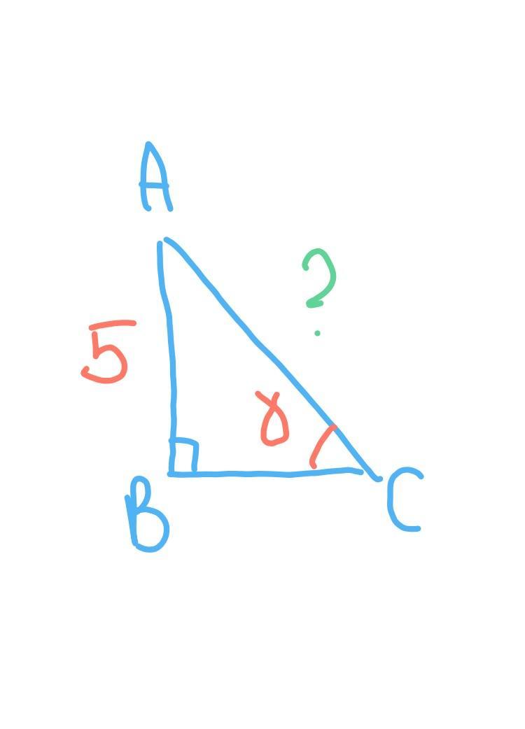 У прямокутному трикутнику кут АВС (кут B = 90°) АВ = 5 см, кут С=ү. Знайдіть AC.