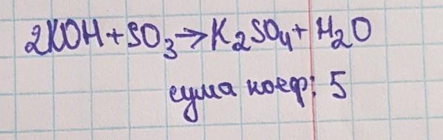 Напиши рівняння хімічної реакції калій гідроксиду з сульфур(V I) оксидом. Встанови суму всіх коефіцієнтів у рівнянні цієї хімічної реакції. СРОЧНО ПЖ