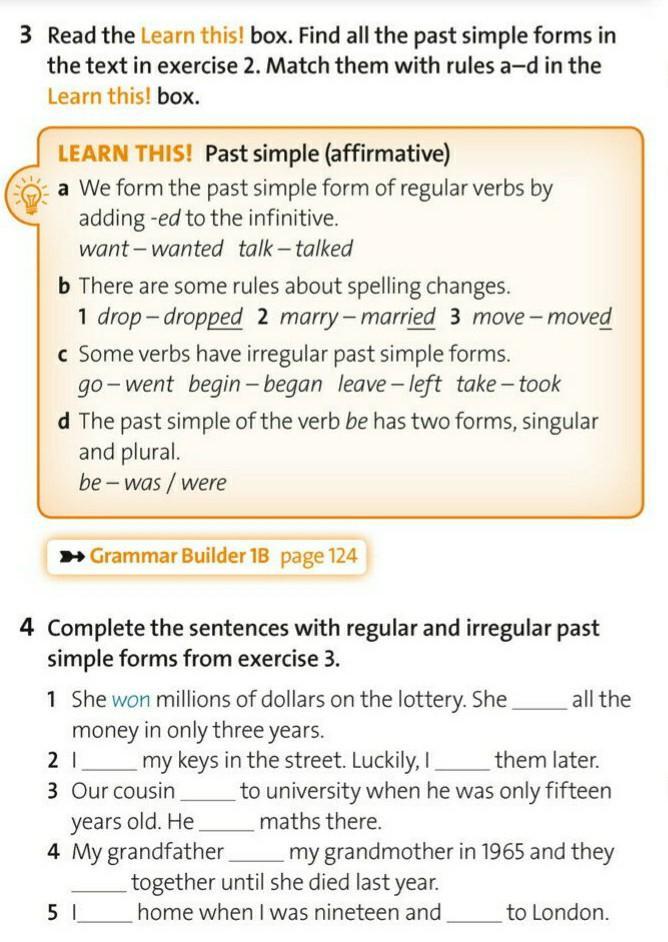 - C - bought, chose, won, felt, gave, found, won (2), spent, had