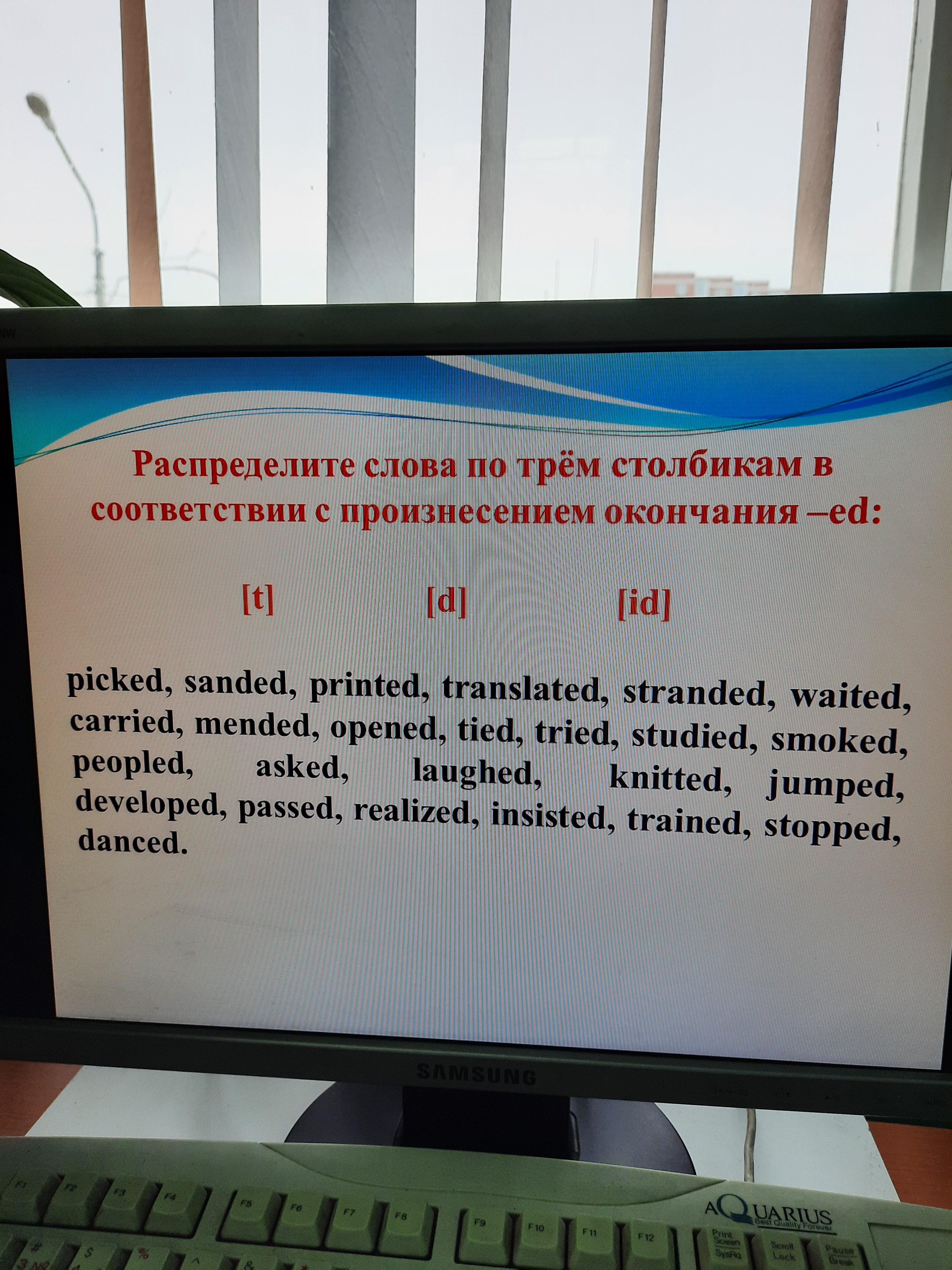 В первом столбике[t]: picked, studied, smoked, sanded, printed, translated, stranded, insisted.