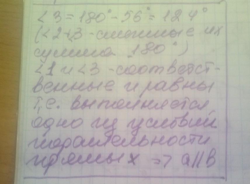 угол 3 равен 124°, т.к. углы 2 и 3 смежные