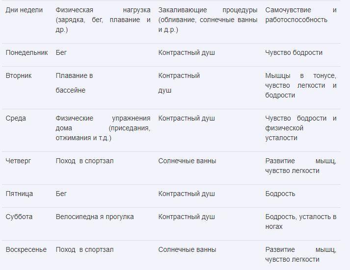 каме дня физических нагрузок и закаливаох процедур, обес-