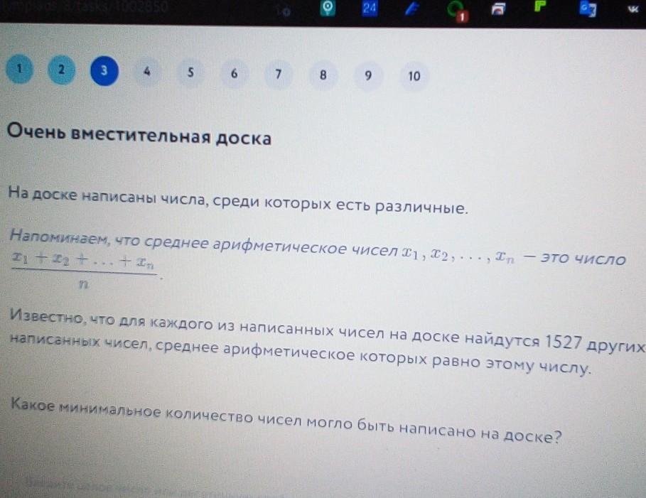 написанных чисел, среднее арифметическое которых равно этому числу.