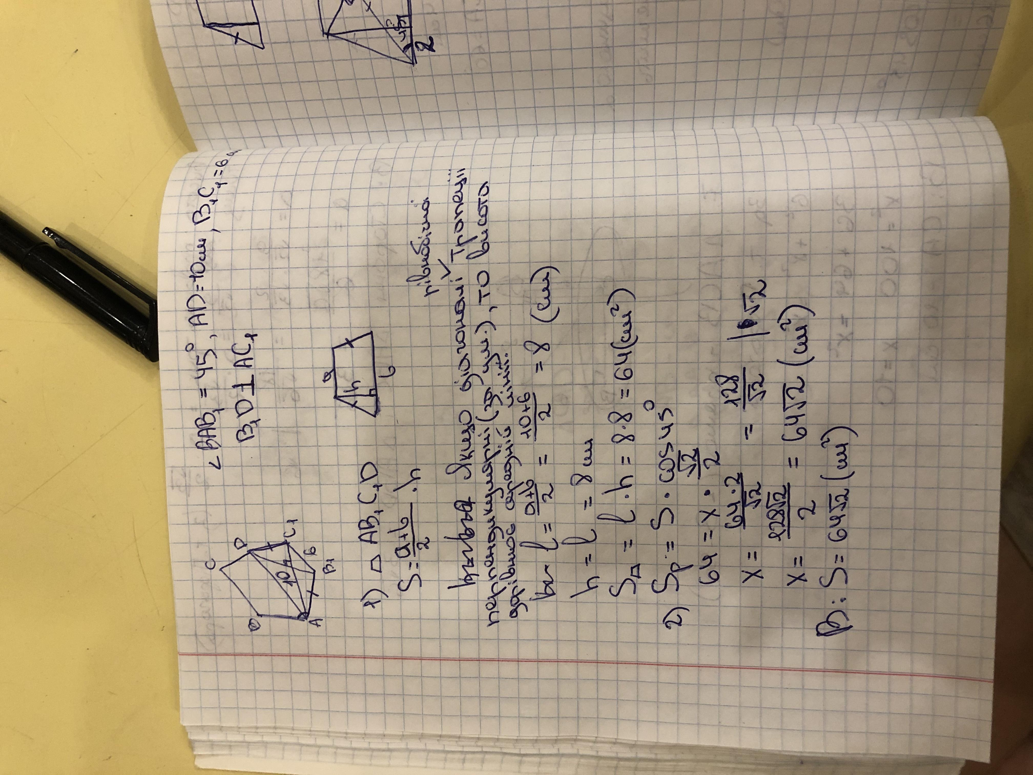 2) Ортогональною проекцією трапеції є рівнобічна трапеція, основи якої дорівнюють 6 см і 10 см, а діагоналі перпендикулярні. Знайдіть площу даної трапеції, якщо кут між її площиною і площиною проекції дорівнює 45°.
