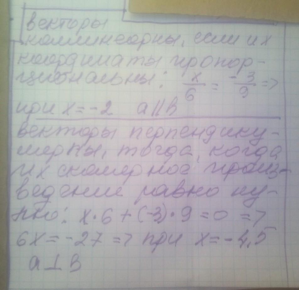 Дано вектори a(х; -3) і b(6; 9). При якому значенні x вектори a і b