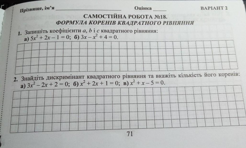 2. а) D=-20 немає рішень б) D=0 має один корінь в) D=21 має 2 корені