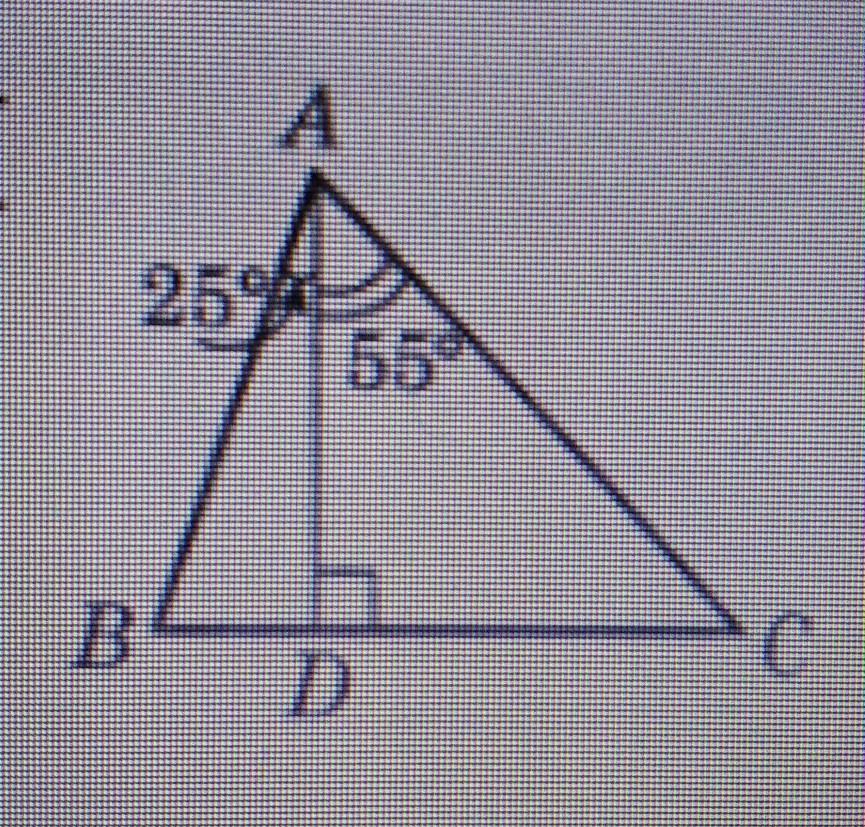 СРОЧНО! ДАМ 50 БАЛЛОВ! На рисунку AD - висота трикутника ABC. Знайдіть кути цього трикутника.