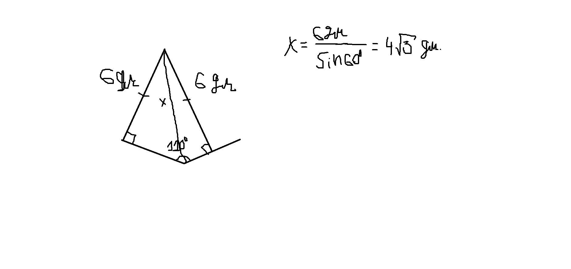 Найдите расстояние от точки до ребра двугранного угла, если величина двугранный угол равен 120 градусов, а точка от двух стен двугранного угла отдалена на 6 дм