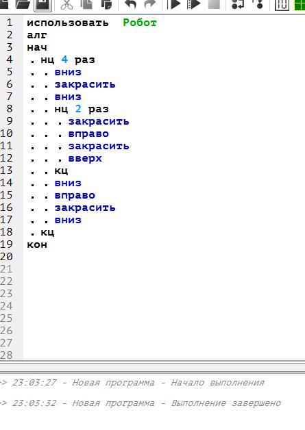 Сколько клеток будет закрашено исполнителем Робот в результате выполнения набора команд?