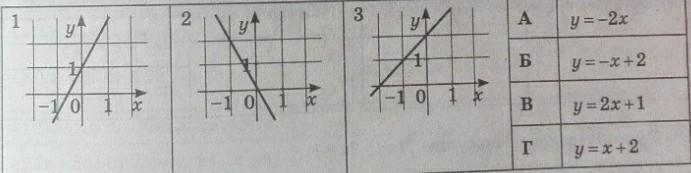 установіть відповіднісь між графіком функції (1-3) і формолую (А-Г). що задає цю функцію.