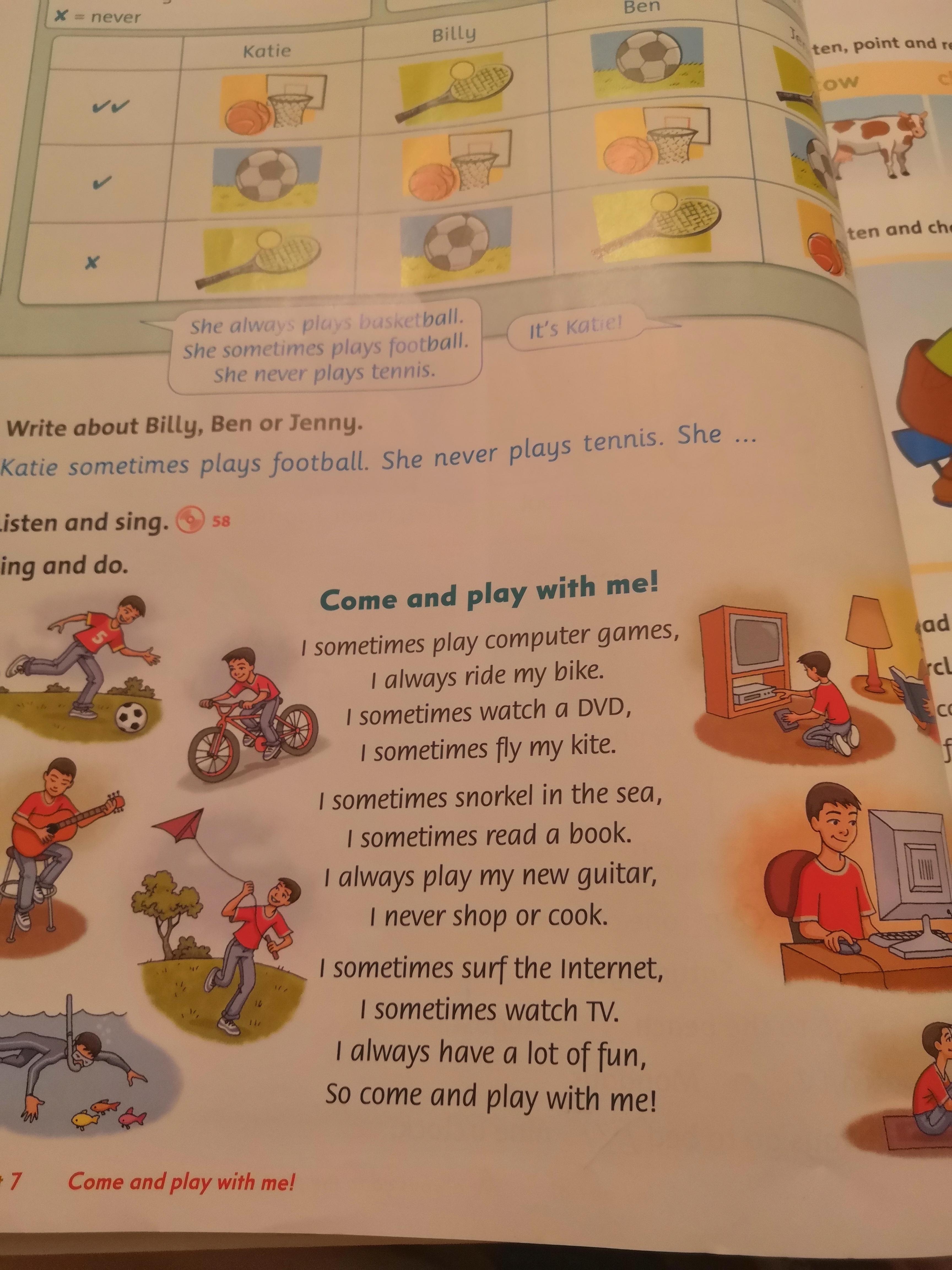 He sometimes watching TV.