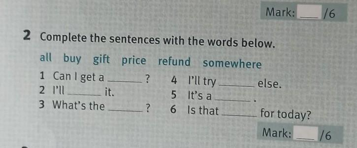 2 Complete the sentences with the words below.